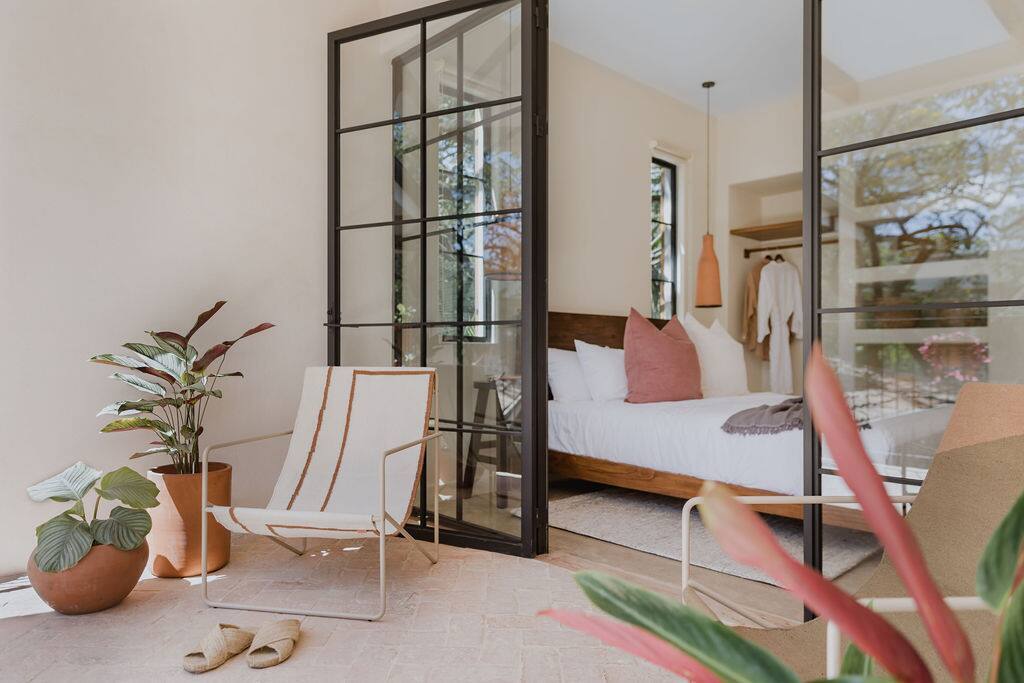 Está en Nosara, en la tierra de vida pura, que esconde el sublime hotel Sendero. Allí, la consigna es “bienestar”. Como el hotel boutique está al lado de una reserva natural, optamos por un sala de la jungla, ¡Para admirar la exuberante selva desde nuestra cama! También aprovechamos la ducha exterior, en el balcón, para conectar con la naturaleza. Arquitectónicamente, Sendero es una combinación perfecta entre lo moderno y lo tradicional costarricense. También podrás reconocer las características de una hacienda, incluidas las vigas de madera, los azulejos de cerámica y los grandiosos arcos (¡puntos de bonificación por utilizar materiales reciclados locales!). Como la conservación de los recursos naturales es el núcleo del concepto, el hotel ha establecido un riguroso programa de gestión de residuos. Recoge y trata agua de lluvia y aguas negras. Los surfistas que vengan a desafiar las olas de Nosara podrán así quedarse allí con la conciencia tranquila. Y eso es bueno: encontramos, a pocos pasos del establecimiento, nada menos que 8 km de playa virgen.
