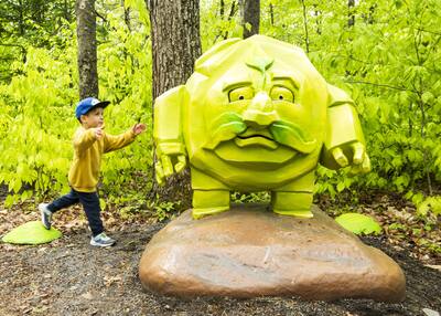 Aquí hay una nueva atracción en Canyon Sainte-Anne, media hora de Old Quebec. Los personajes de piedra, inspirados en la leyenda de los Petraminis, se muestran como los creadores y los guardias del cañón.