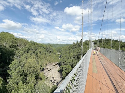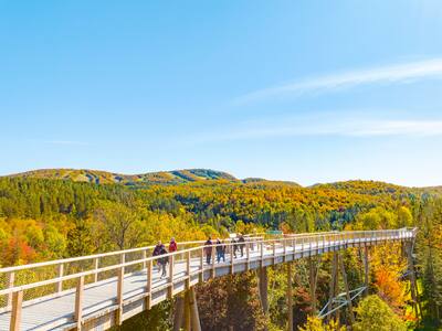 A solo 15 minutos de Mont-Tremblant, la localidad de Mont-Blanc es el hogar de una atracción única en la región: el sendero Cimes. Esta ruta de senderismo de 2.7 km, que consiste en un puente sobre los árboles y una torre de observación de 40 m (12 pisos), ofrece vistas únicas de las montañas, y es accesible incluso para los cochecitos. Nuevo: ¡El sitio se ha equipado con un tobogán gigante de 53 m de altura! Una vez que se completen sus cumbres, puede continuar con la estación Tremblant, que ofrece una buena programación en todo septiembre.