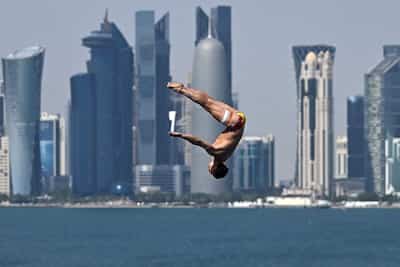 ¡Lo llamamos buceo de altura! La plataforma mide 21 metros para niñas y 27 metros para niños. Así, las damas caen a una velocidad de 75 km/h antes de entrar al agua. La de los hombres, en tres segundos, puede alcanzar hasta 85 km/h.