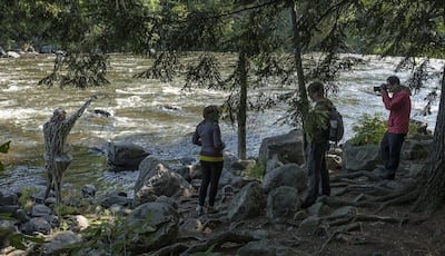 En dirección a las cataratas, es necesario hacer un pequeño desvío por el Sentier des Arts, un tramo de 200 metros con siete esculturas de madera a lo largo de la costa. Uno de ellos representa al famoso botánico Hermano Marie-Victorin.
