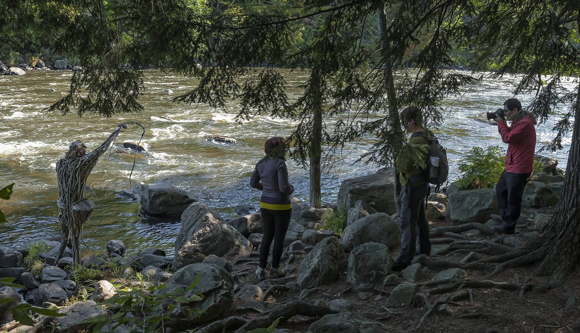 En dirección a las cataratas, es necesario hacer un pequeño desvío por el Sentier des Arts, un tramo de 200 metros con siete esculturas de madera a lo largo de la costa. Uno de ellos representa al famoso botánico Hermano Marie-Victorin.
