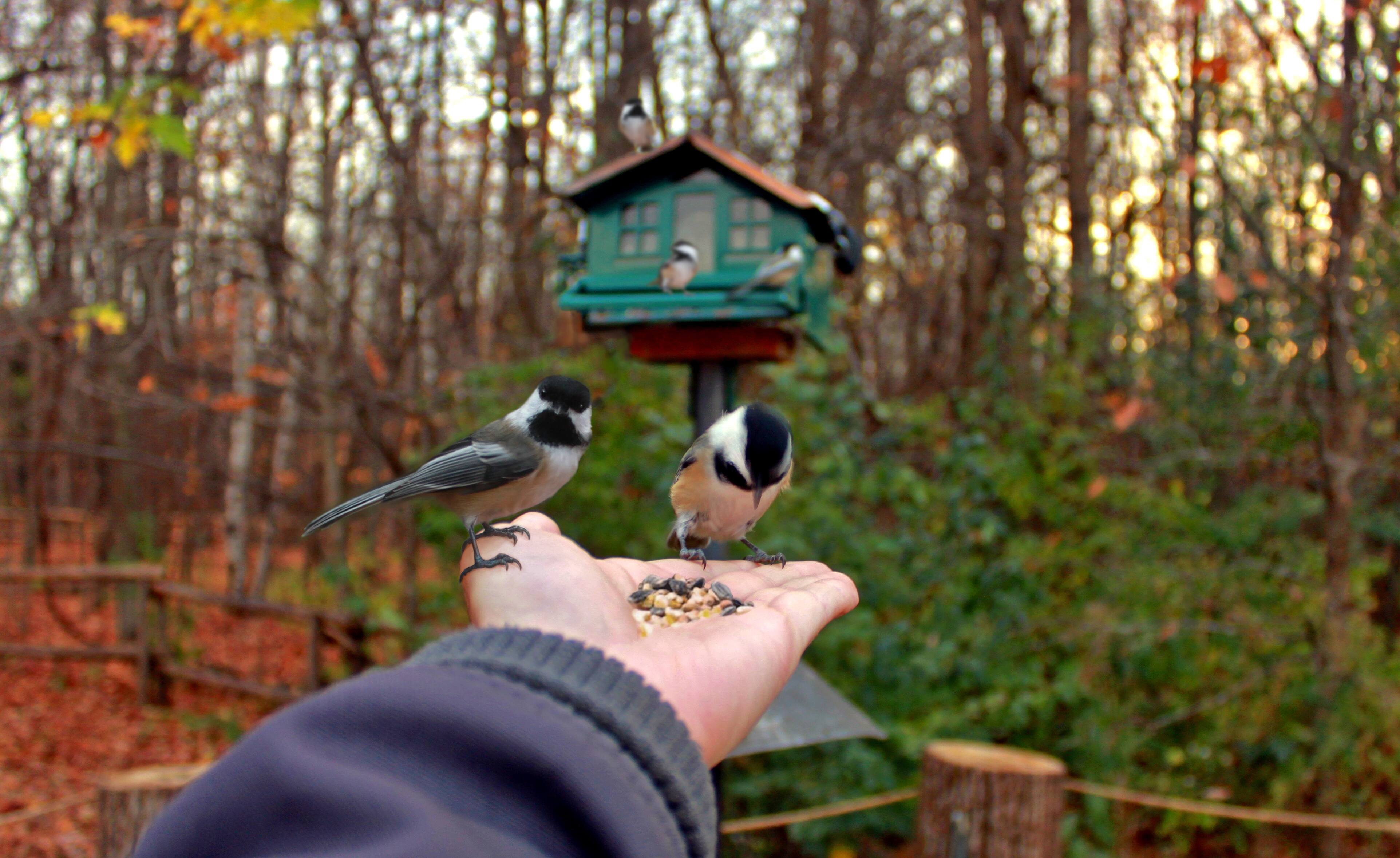 La atracción sigue siendo la misma: atraer carboneros y trepadores a nuestras manos con semillas de girasol.