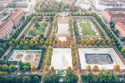 La ciudad de Copenhague, Dinamarca, reconstruyó el parque Enghave para convertirlo en un estanque de retención de agua de 22.600 m3en caso de episodio de lluvias torrenciales.