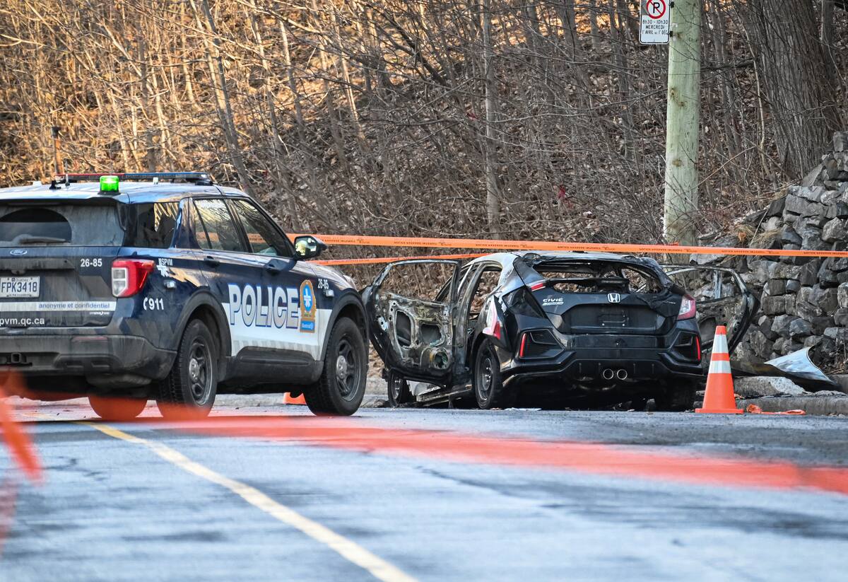 Posteriormente, este vehículo fue incendiado cerca del cruce de las avenidas Lacombe y Louis-Colin, lo que obligó a los bomberos a intervenir.