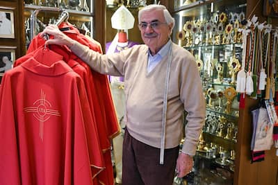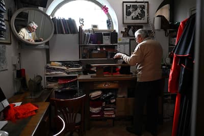Durante décadas, un sastre de Roma ha estado haciendo el sestujo blanco que los nuevos papas tienen inmediatamente después de su elección, pero esta vez la competencia levanta la cabeza.