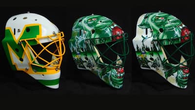 Para su última vuelta, Fleury llevará cuatro máscaras recién pintadas, dos en casa y dos en pistas contrarias. En particular, tiene dos cascos retro que rinden homenaje a las Minnesota North Stars, donde el norte del logotipo ha sido sustituido por un METRO.