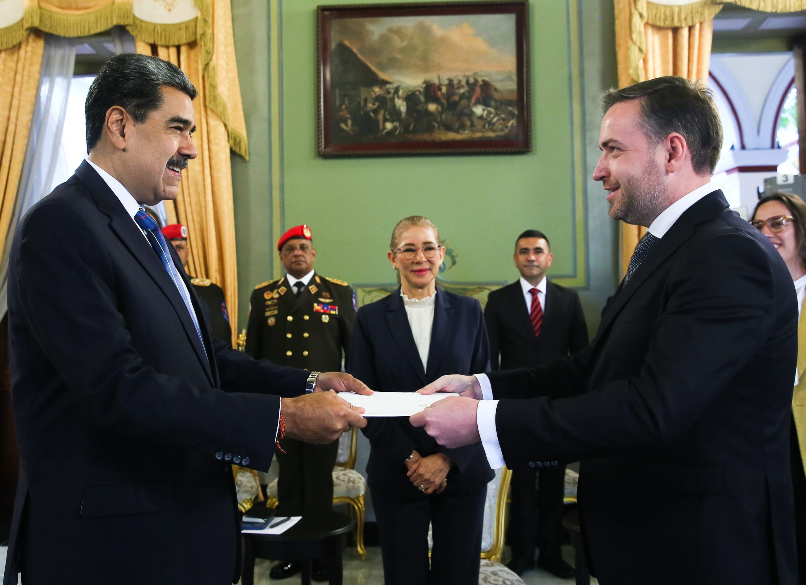 Además, tiene una peculiaridad de que el defensor de la estación también recibió las credenciales de los cinco nuevos embajadores en Venezuela de Bielarús, el reino de Camboya, la República de la Costa de Marfil, Hungría y la República de Azerbaiyán. Lejos, el gerente agradeció a los representantes diplomáticos por la presencia con Venezuela por el progreso frugal, comercial y cultural.