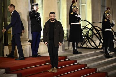 Zelensky, a su vez, pisó la grava del patio del palacio presidencial menos de una hora después, en esta reunión trilateral “decidida en el último momento”, al margen de la ceremonia de reapertura el sábado por la noche de la catedral de Notre Dame. -Dama de París, según una fuente diplomática francesa.