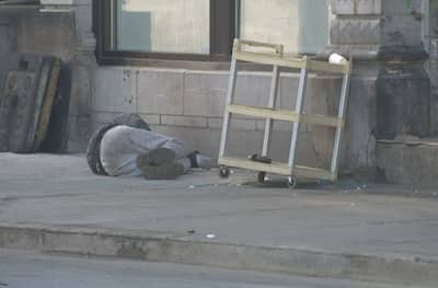 El sábado por la mañana, conduciendo por el centro de la ciudad, no era raro ver a personas intentando dormir al aire libre, envueltas en sacos de dormir, a pesar de que el mercurio rondaba los -10 grados centígrados.