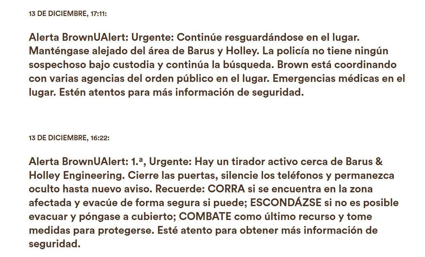 La Universidad de Brown informó a las 16H22 locales (21H22 GMT) la presencia de un “atacante activo”.