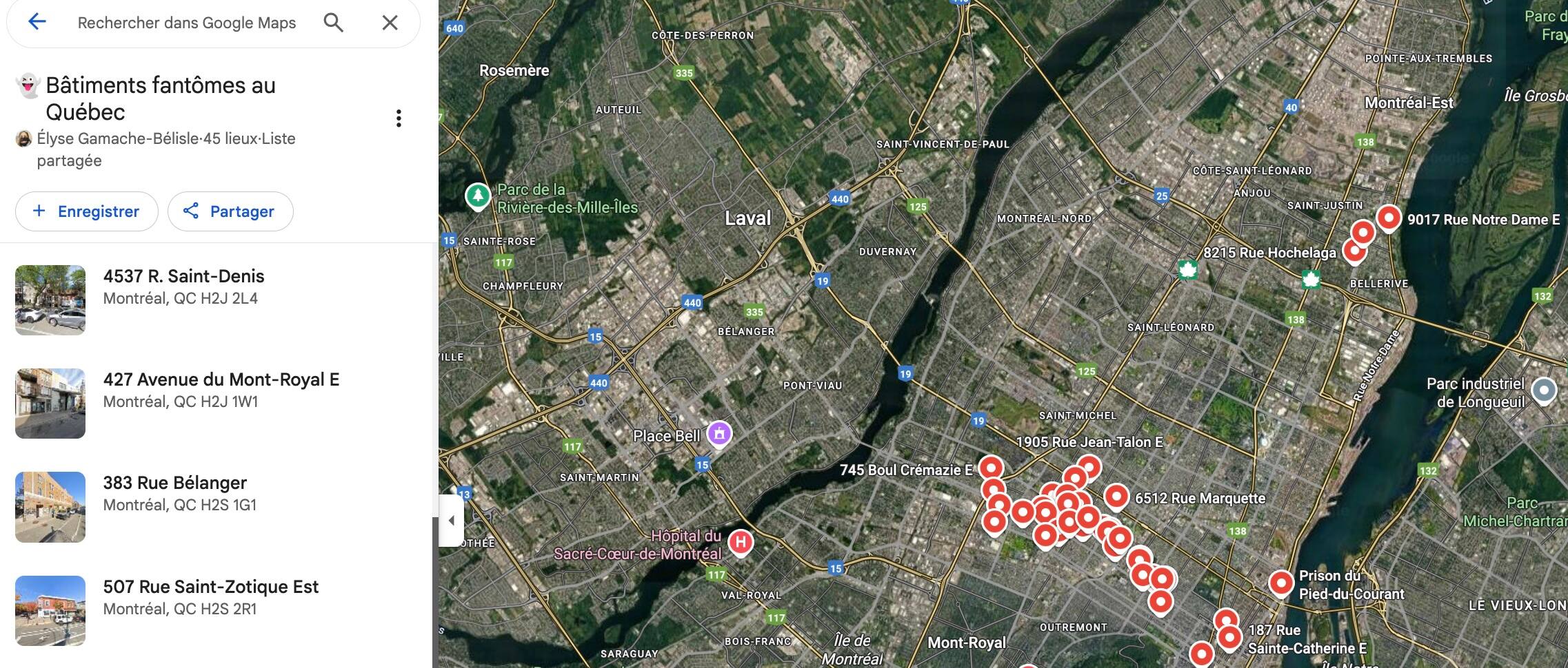 Fue caminando en su vecindario para recolectar viejas latas que Elyse Gamache-Bélisle tenía la idea de enumerar los edificios abandonados que se cruzaron en su camino. Ella los escribe en un mapa que compartió en las redes sociales.