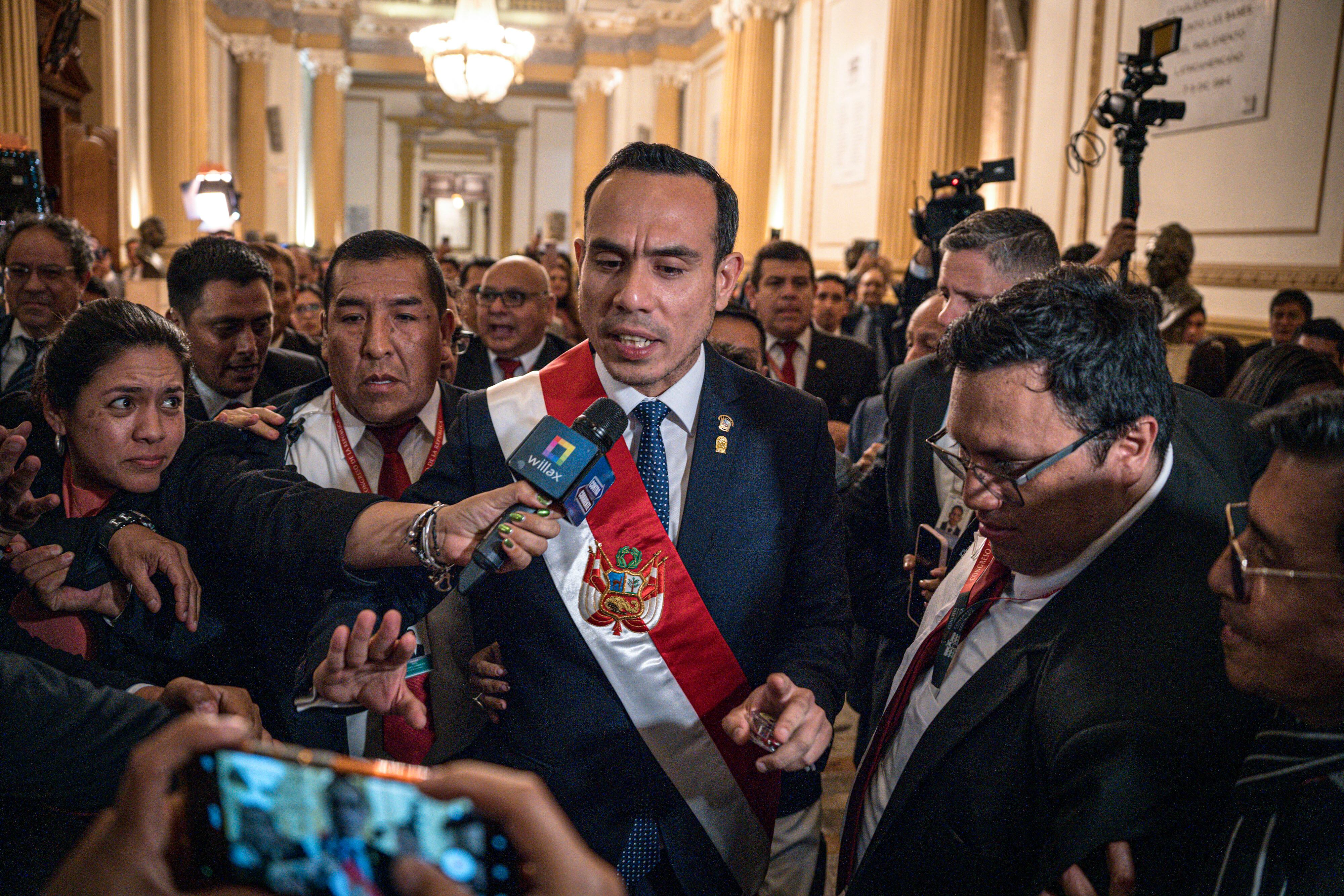 Su toma de mando se concretó después de que el Congreso destituyó en la noche de este jueves de manera exprés a Boluarte, tras aglutinar cuatro mociones de vacancia (destitución) para declarar su “incapacidad moral permanente” para enfrentar la creciente inseguridad ciudadana y el aumento del crimen organizado.