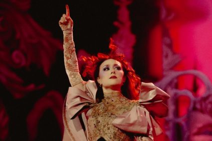 “Soy amiga del monstruo que está debajo de mi cama/ Me llevo bien con las voces dentro de mi cabeza”, canta, vestida con un traje de cuero y lápiz labial oscuro. “Estás tratando de salvarme, deja de contener la respiración/ Y crees que estoy loco, sí, crees que estoy loco/ Bueno, eso no es nada”.