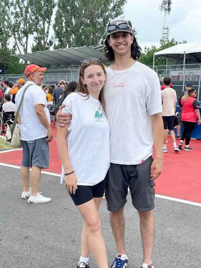 Paraguas en mano, Christopher Gagnon quiso compartir su pasión por la F1 con su novia, Charlie Belzile, una neófita en el tema.
