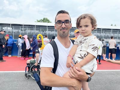 Por su parte, Christopher Gagnon es un fanático incondicional de la F1, aunque no estaba disfrazado como otros fanáticos presentes el jueves: algunos mostraron sus colores con gorras de Ferrari, camisetas de Red Bull, cascos con forma de spoiler de Mercedes hecho por uno mismo o cualquier otra cosa. Otro accesorio original.