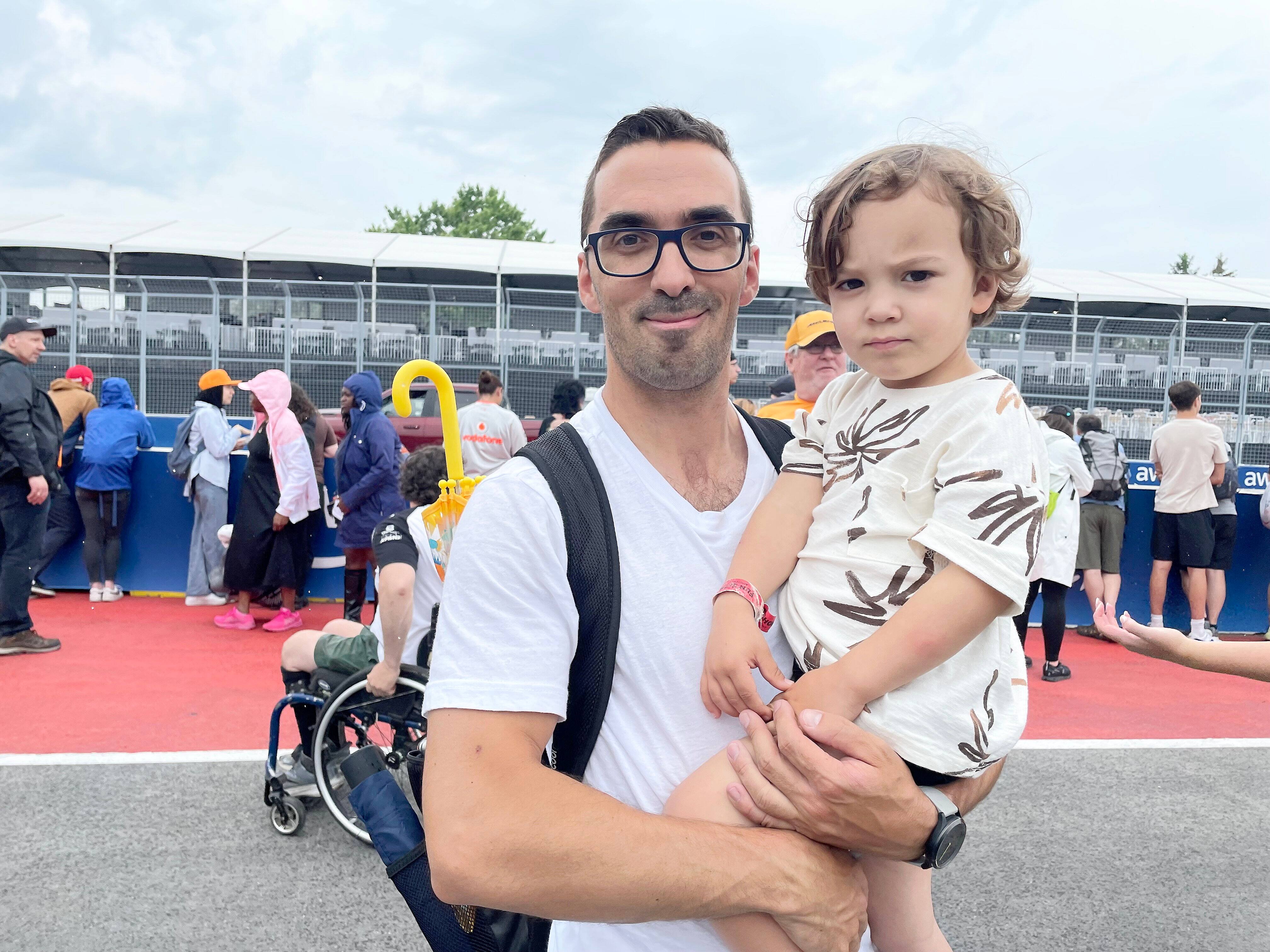 Por su parte, Christopher Gagnon es un fanático incondicional de la F1, aunque no estaba disfrazado como otros fanáticos presentes el jueves: algunos mostraron sus colores con gorras de Ferrari, camisetas de Red Bull, cascos con forma de spoiler de Mercedes hecho por uno mismo o cualquier otra cosa. Otro accesorio original.