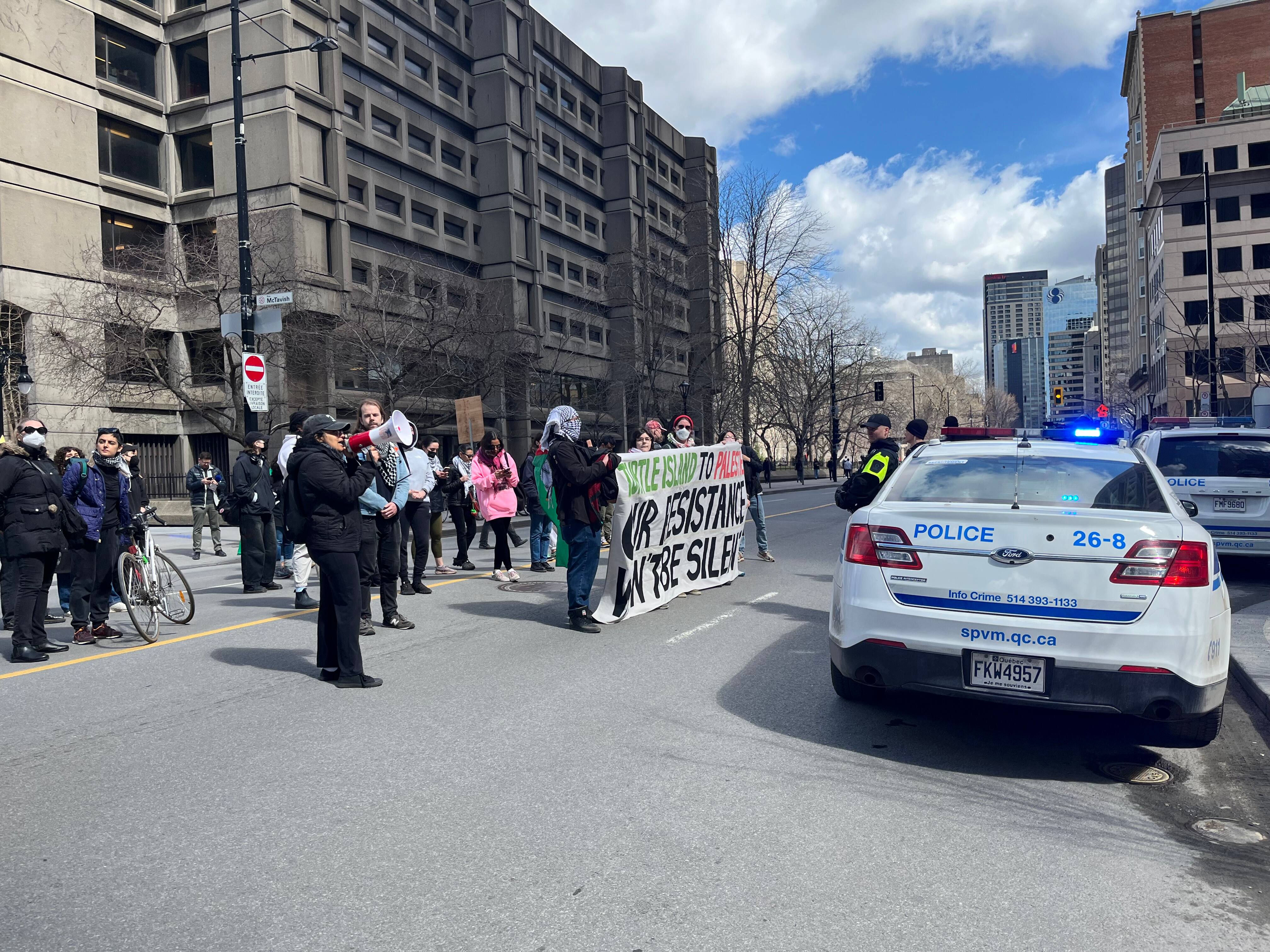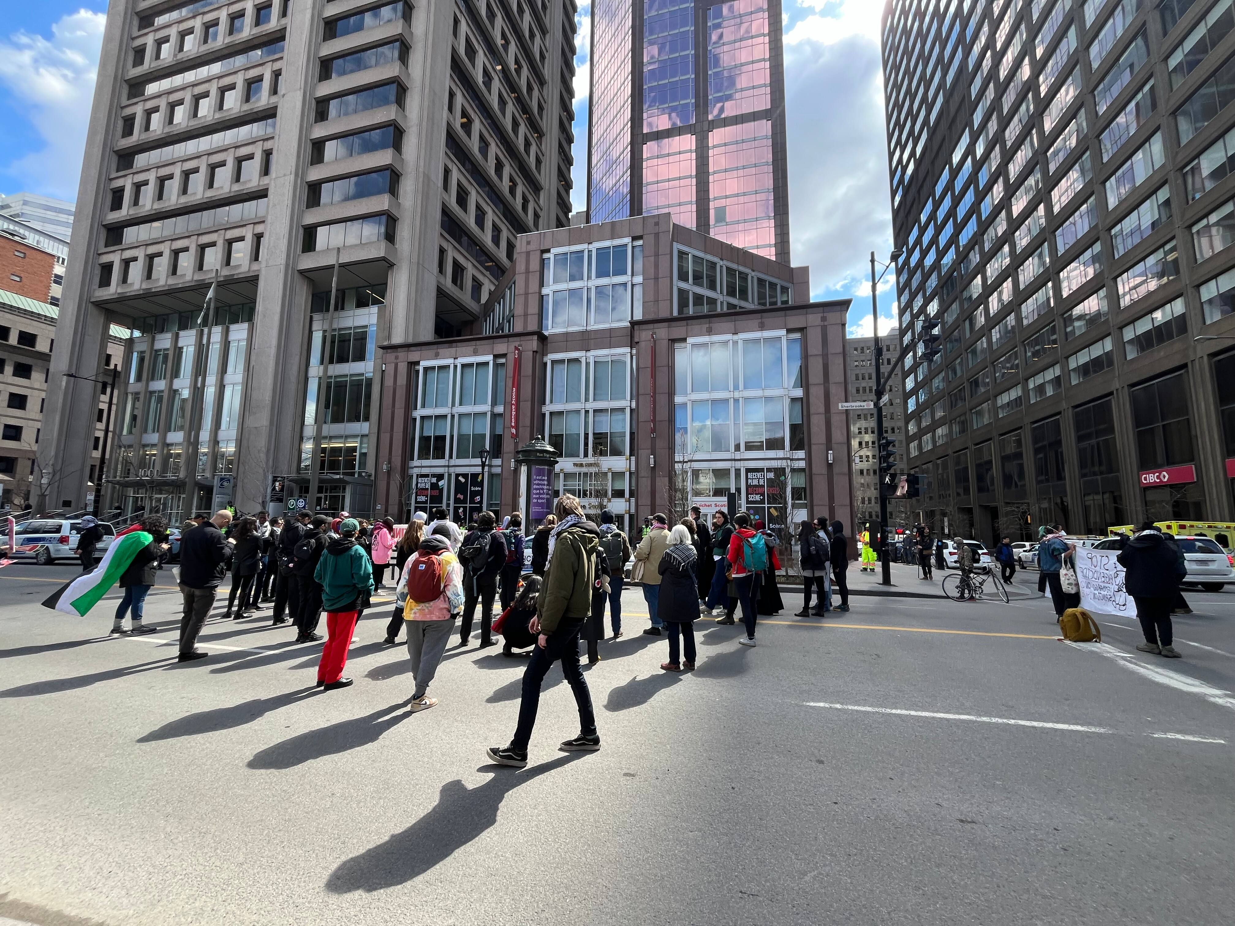 [EN IMAGES] Scotiabank ocupado por manifestantes pro palestinos en Montreal