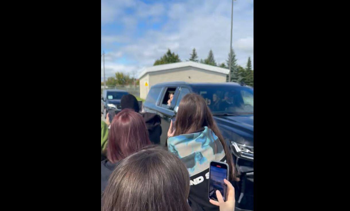 En un vídeo compartido con TVA Nouvelles podemos ver al artista de 22 años llegar en una furgoneta negra. Esto fue inmediatamente apelado por muchos admiradores eufóricos.