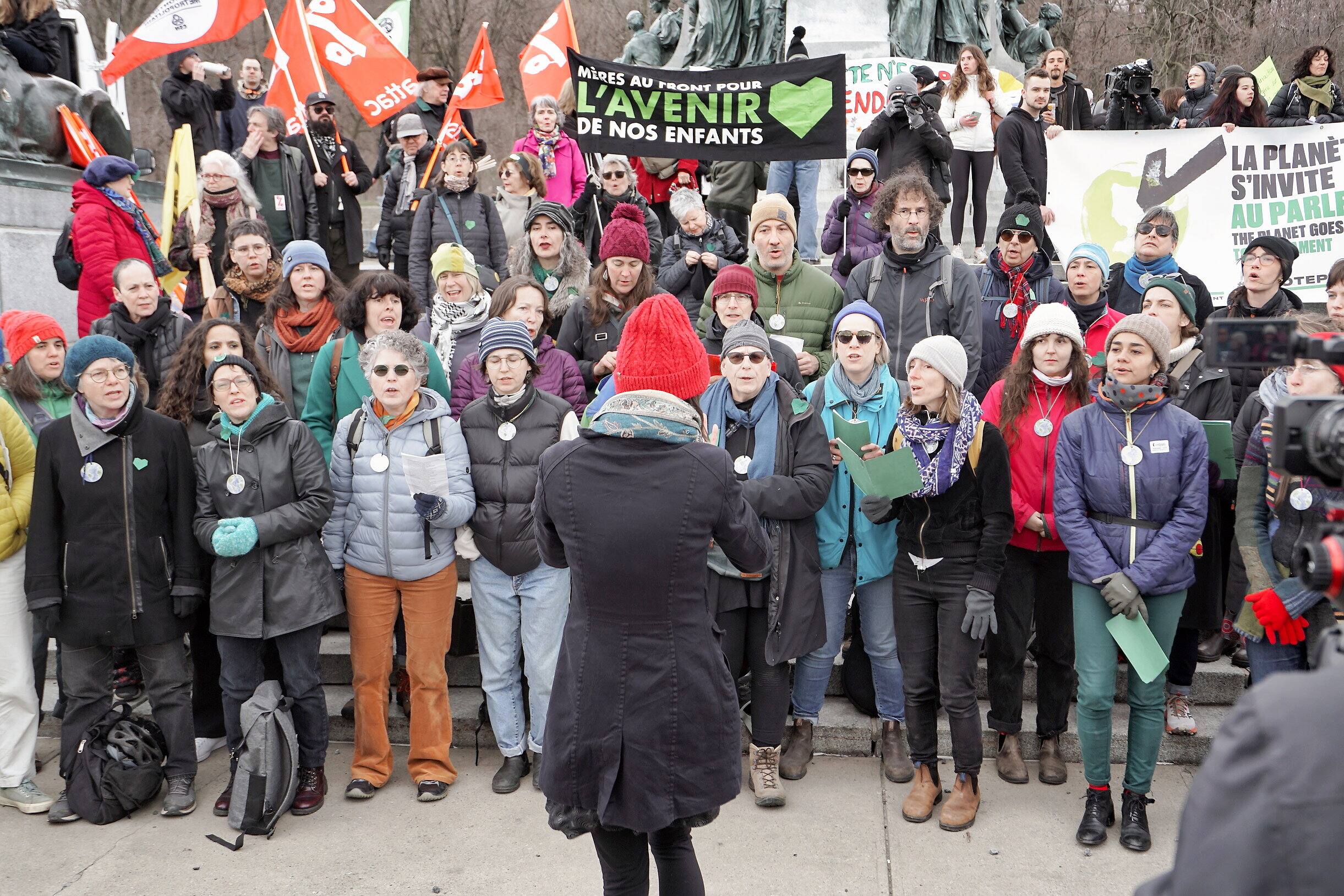 Este es el mensaje principal que querían enviar los cuatro grupos que organizaron el evento: El planeta se invita al Parlamento, El Coro de Transición de Montreal, ATTAC-Québec y Pour le futur.