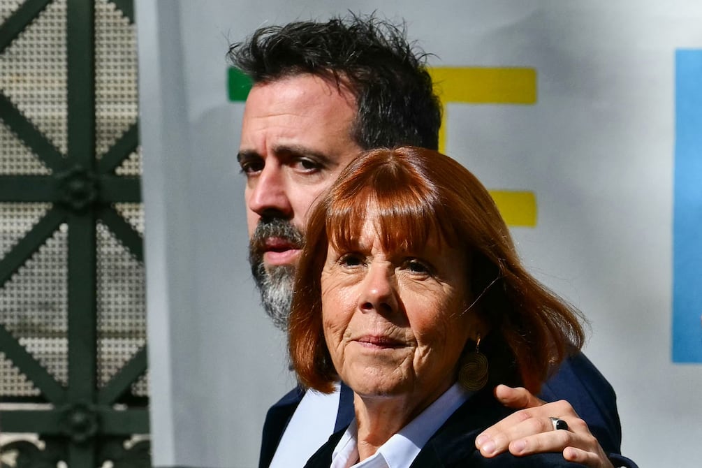 Gisèle Pelicot (der.) y su hijo Florian Pelicot salen durante un receso en el marco del juicio de apelación en el caso de violación de Mazan, en el juzgado de Nimes, sur de Francia, el 8 de octubre de 2025. (Foto de Christophe SIMON / AFP) Foto: AFP