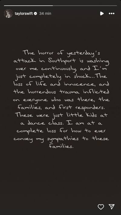 • Lea también: Taylor Swift dice estar “completamente conmocionada” por el apuñalamiento en Inglaterra