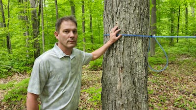Alex Gagnon, ingeniero forestal y propietario de una cabaña de azúcar, no puede ver en riesgo el arce maduro.