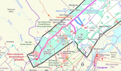 - Un segundo de aproximadamente 50 km entre el puesto proyectado en el MRC d’Afrray y el futuro post Jean-Jacques-Archambault, en Sainte-Julienne