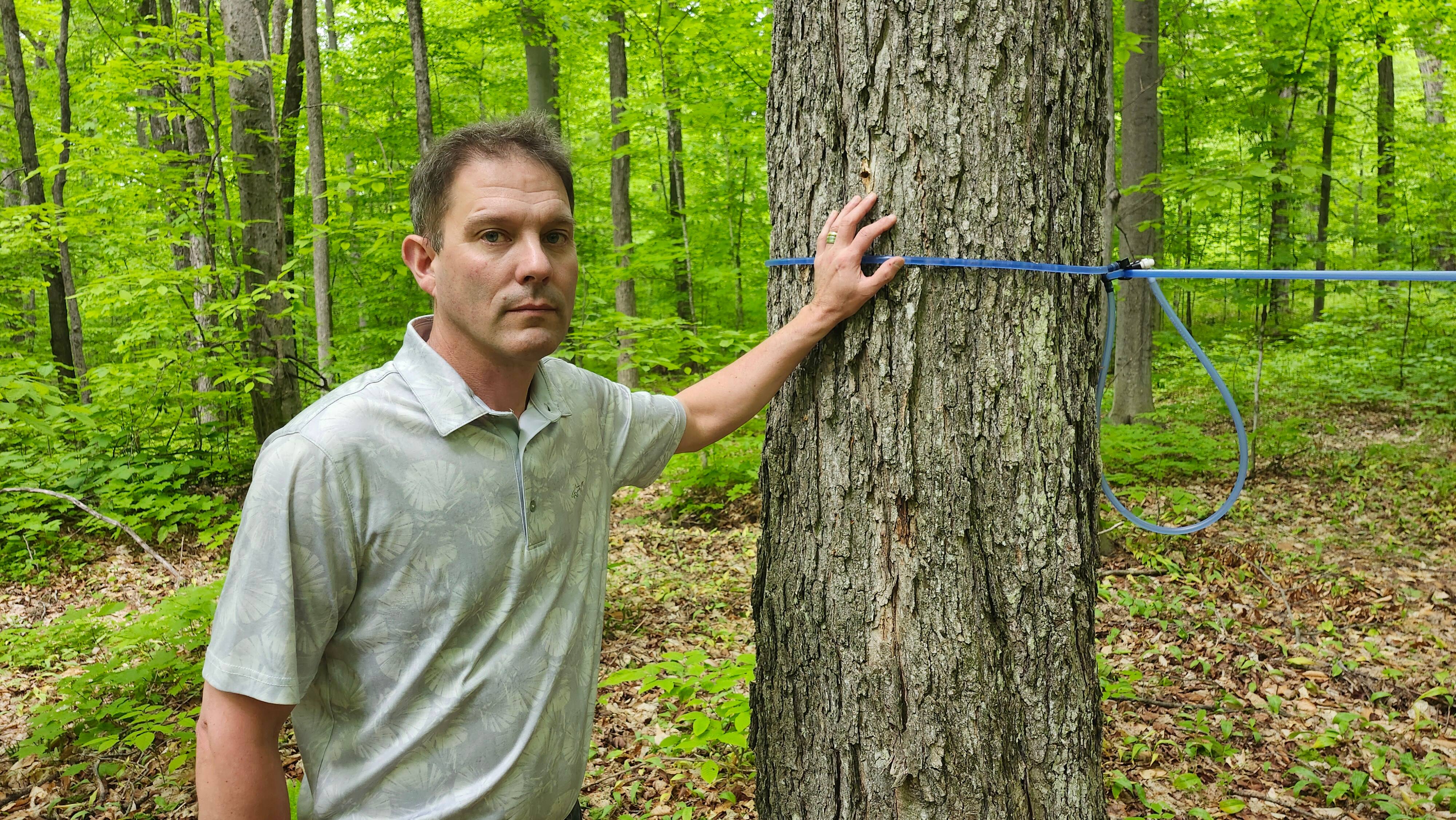 Alex Gagnon, ingeniero forestal y propietario de una cabaña de azúcar, no puede ver en riesgo el arce maduro.