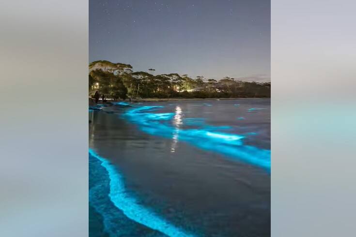 Imágenes | Algas bioluminiscentes de un tono azul observado en playas de Australia