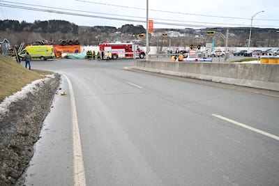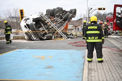 El accidente se produjo alrededor de las 12:30 horas en la esquina de las rutas 112 y 173, en Vallée-Jonction. Un vehículo pesado que descendiera por la pronunciada pendiente del Boulevard du Cap no habría podido reducir la velocidad lo suficiente para girar a la izquierda y habría caído hacia atrás.