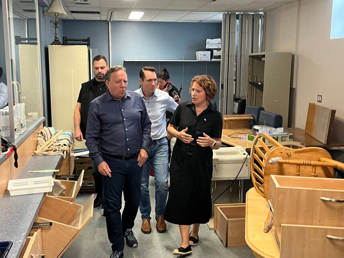 Al final de su reunión con los alcaldes, Legault hizo una breve visita al Centro Multiservicios Sanitarios y Sociales de Comtois, cuyo sótano entero estaba inundado.