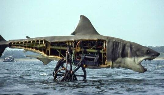 En condiciones desesperadas, medidas desesperadas, incluso era un momento para reemplazar a los animatronics con un verdadero tiburón blanco para encontrar una solución improvisada (existe una escena aterradora de la jaula, en condiciones reales).