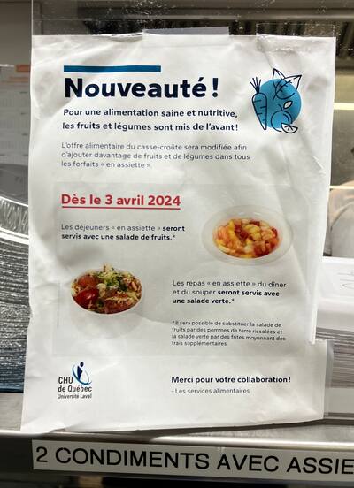 El CHU también confirma que a partir del próximo invierno se implementará una nueva oferta “sanitaria” en las cafeterías de los cinco hospitales de Quebec.