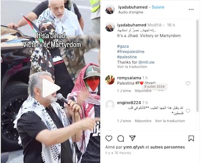 En agosto, llamó a la yihad (guerra santa), durante un evento llamado “Noche de ira” en Montreal. A continuación rendimos homenaje a Ismaël Haniyeh, líder de Hamás (grupo considerado terrorista por Canadá) asesinado en Irán.