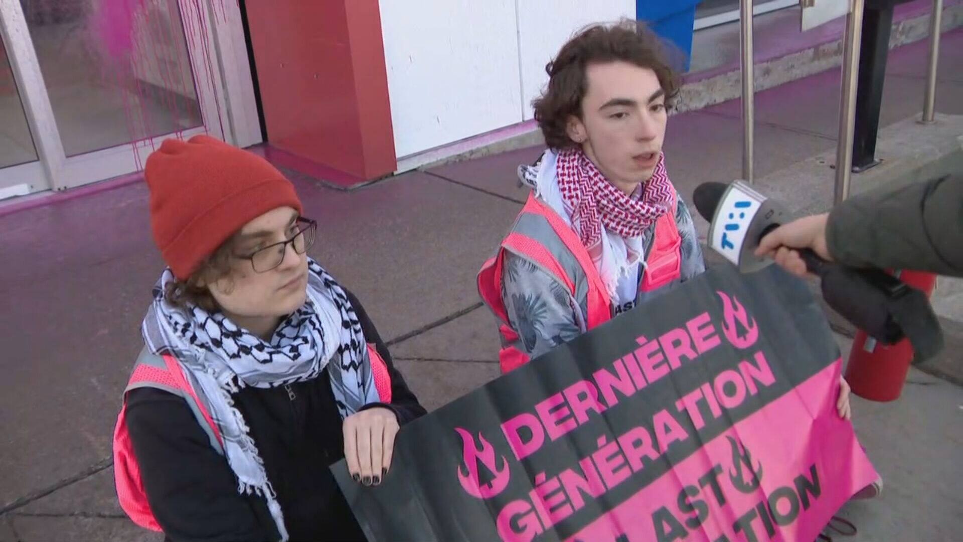 Uno de los dos activistas que roció pintura rosa en un concesionario Tesla en Montreal afirma haber cometido su acto para apuntar a los responsables del cambio climático.