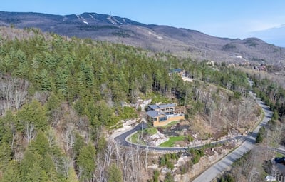 La residencia, construida en 2012, se encuentra en lo alto de una parcela inclinada de 148.000 pies.2o 3,4 acres, que ofrecen una vista espectacular del popular Lac Tremblant. Esta casa, que da al parque nacional de Mont-Tremblant, también cuenta con un porche y una gran terraza equipada con spa.