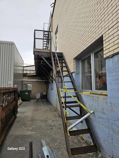Se condena una escalera de rescate en el Hospital Amos porque es una lástima en el punto y muy oxidad.