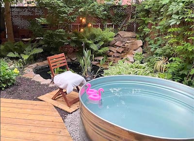 Una opción asequible para espacios pequeños… ¡y presupuestos reducidos! La piscina-tanque (o piscina de tanques de almacenamiento) es un depósito de acero que se ofrece en diferentes formatos (redondo, alargado, etc.) y que se puede utilizar durante todo el año (en un jacuzzi, en un baño de hielo, etc.). No nadaremos allí, pero aún así te permitirán refrescarte durante el verano. Es posible añadir un filtro y una bomba. Buen punto: ¡el metal calienta el agua “naturalmente”! También existen depósitos de plástico que son más ligeros y no se oxidan. Finalmente, como los cuerpos de agua atraen insectos, el agua debe ser tratada.