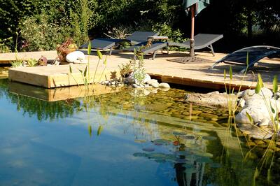 Costo : de $20.000 a $30.000 para construcción por parte de un profesional para piscina de 20 pies2 superficie (fuente: Éco Habitation). Pero usted mismo puede transformar su piscina enterrada en una piscina natural. O hacer el proyecto completamente solo. El costo es definitivamente menor.