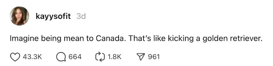 “Imagina ser malo con Canadá. Es como patear a un golden retriever “, escribió una persona en los hilos de la red social.