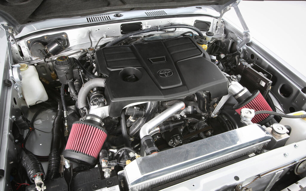 A pesar de todo, el equipo Toyota Motorsports Garage tuvo que realizar algunas modificaciones, incluida la integración de nuevos soportes de motor y mecanizó una placa adaptadora para adaptar el i-FORCE V6 a la carcasa del embrague de la caja de cambios de 5 velocidades original del FJ60. El cárter de aceite del motor ha sido rediseñado para adaptarse a la configuración del chasis del Land Cruiser, mientras que un sistema de escape hecho a medida produce un sonido agresivo.