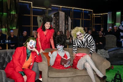 Para este episodio especial que destaca Halloween, Julie Bélanger y Jean-Michel Anctil lucirán disfraces inspirados en el mundo de la película. Betelgeuse.