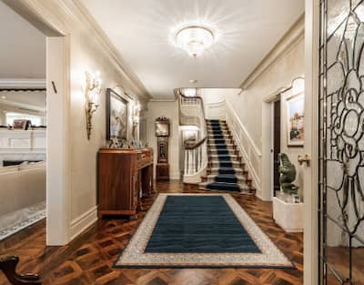 Ubicada en 9 Roxborough Avenue, en Westmount, la residencia de tres pisos (9,719 pies cuadrados).2) incluye 27 habitaciones, incluidos ocho dormitorios, seis baños, cuatro tocadores y una piscina cubierta cubierta con un techo de cristal.