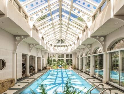 Ubicada en 9 Roxborough Avenue, en Westmount, la residencia de tres pisos (9,719 pies cuadrados).2) incluye 27 habitaciones, incluidos ocho dormitorios, seis baños, cuatro tocadores y una piscina cubierta cubierta con un techo de cristal.