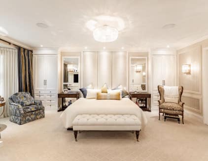 Construido en 1988 en una parcela de casi 12.000 pies cuadrados.2esta propiedad de lujo también incluye un sótano completamente terminado, un gimnasio, una sauna, un trastero, cuatro chimeneas, un garaje para cinco coches y espacio exterior con capacidad para tres más.