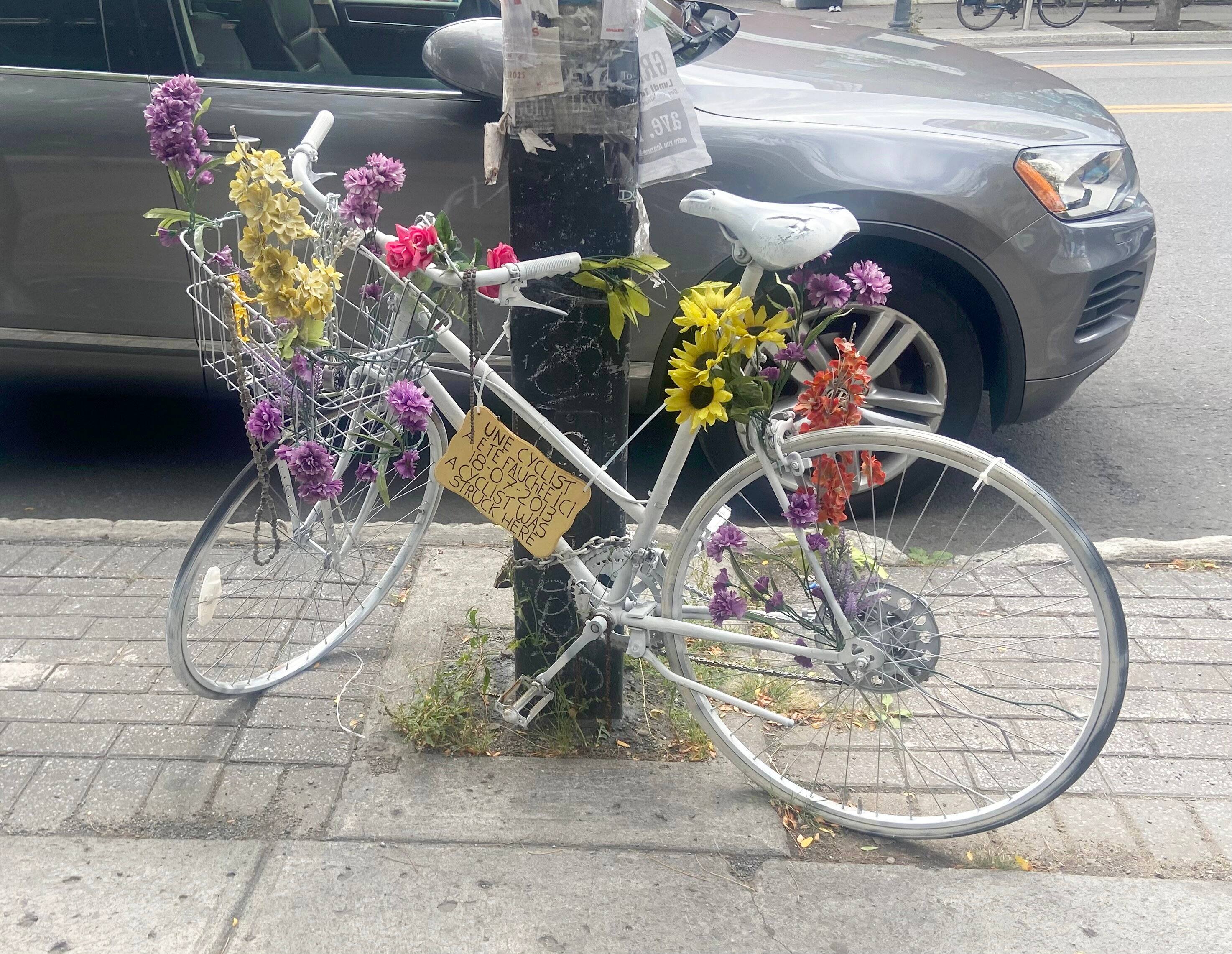 Según la Sra. Brebonne, Avenue du Parc es “probablemente la vía más mortal” en todo Montreal. Ella subraya la presencia de “tres bicicletas blancas y tres zapatos blancos por menos de 3 kilómetros” en esta avenida ampliada.