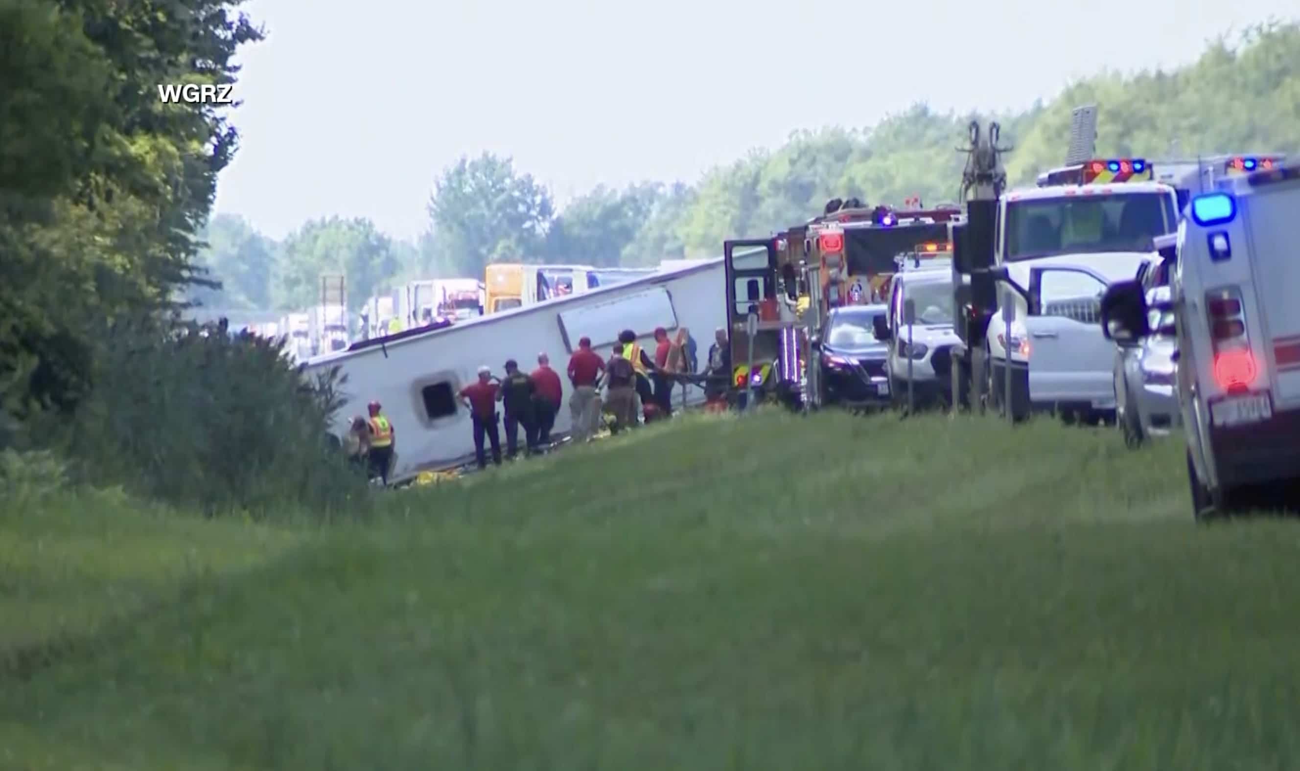 “Es un entrenador turístico que vino de las Cataratas del Niágara hacia lo que creemos que somos la ciudad de Nueva York, con más de 50 pasajeros a bordo, mujeres, niños también”, dijo James O’Callaghan, portavoz de la Policía Estatal, entrevistado en televisores locales.