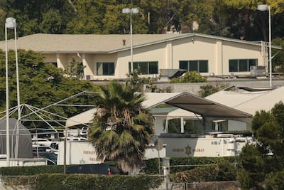 Las imágenes aéreas de la cadena KTLA local muestran a una persona en atuendo de desminación están ocupadas alrededor de un camión que podría contener explosivos, cubiertos por una gran carpa.