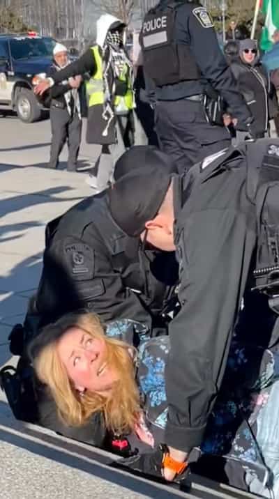 Heather Natasha Graham, mientras la policía la esposa después de insultar, perturbarse y filmarse manifestantes.